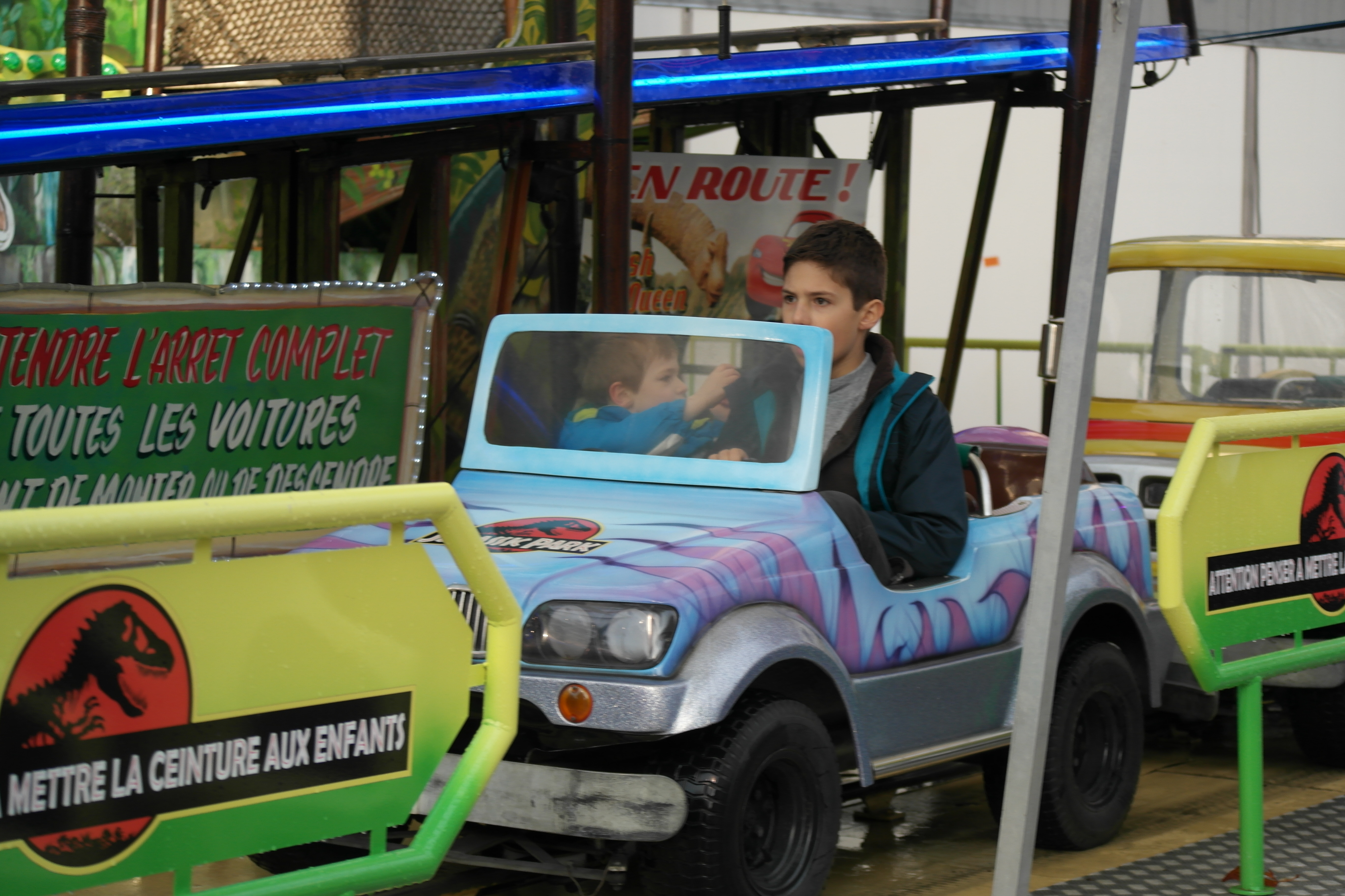 Des manèges, plein de voitures de partout pour le bonheur du petit.