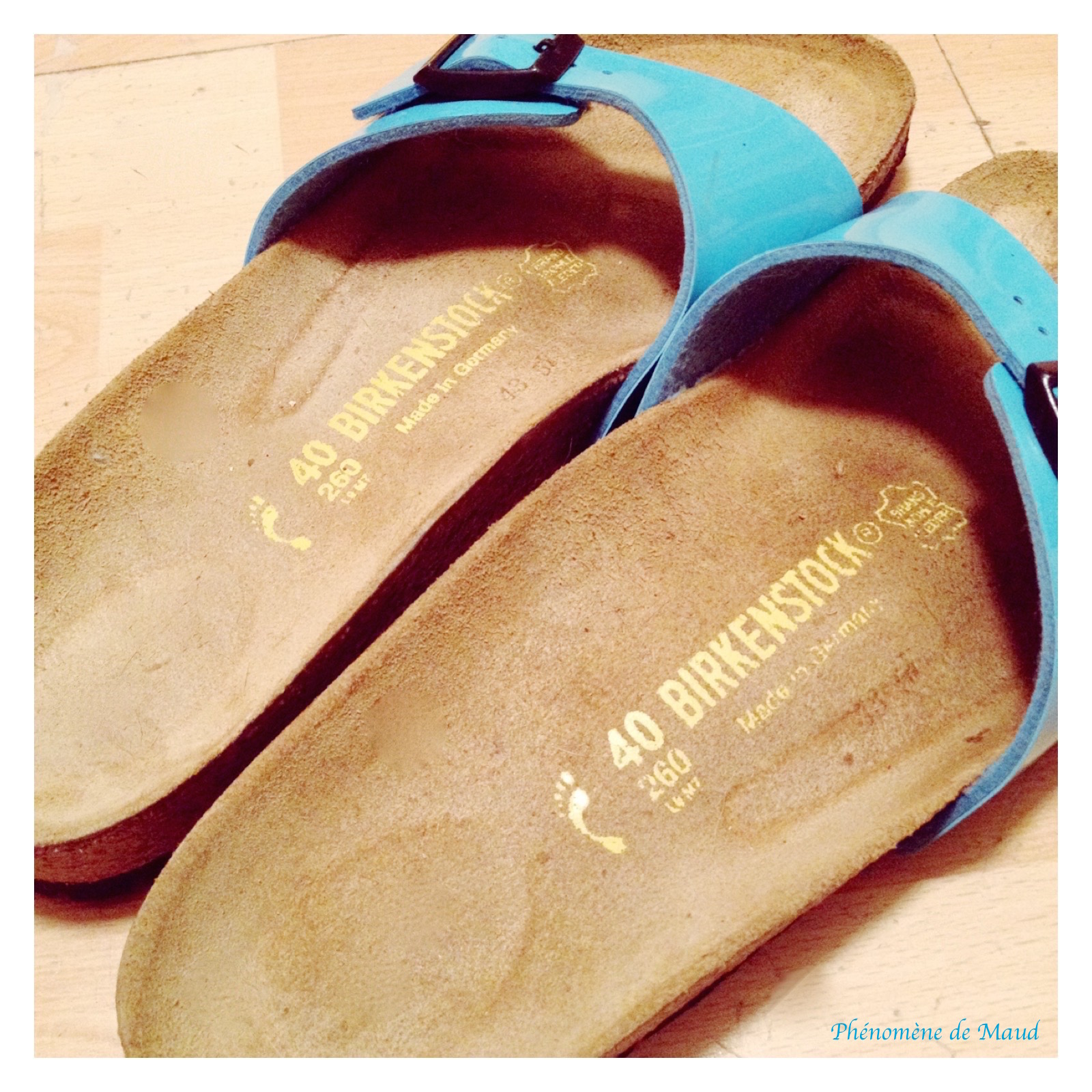 Chaque année je m’en paie une paire, que je garde souvent dès le mois de mai, jusqu’à fin septembre si le temps le permet. Alors oui je commence à accumuler les paires de Birkensotck car elles sont toutes en très bon était, mais mes goût changent au fil des années, parfois j’ai eu envie de mules noires vernies, des bleues turquoises ou bien des blanches vernies comme celles de cette année. Il y a eut celles à 2 brides, celles mono bride, les tongs, les passes pouces.